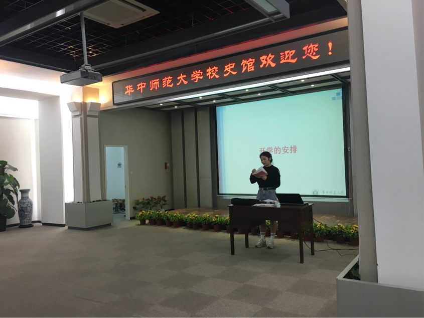 紧接着,辅导员李鸿以“迎新”为主题,从三个方面深入开展。第一部分是以校(院)史、校(院)风、校(院)纪为主要内容的校(院)情教育,其中还对华师周边设施及美食的概况进行了讲解,让初入华师校园的新生们对新环境有个大致的了解。