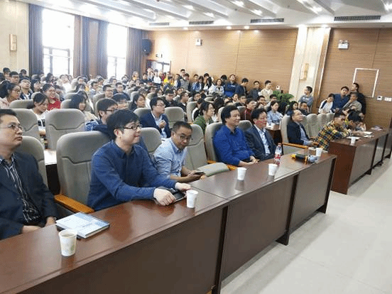 报告开始前,化学学院吴安心教授以“有梧桐而来凤——华师之荣”为题,隆重介绍唐院士,并代表全体师生热烈欢迎唐院士的到来。唐院士平易近人,幽默风趣,从几个有趣的实例入手,以简单明了的语言,配以清晰生动的图片深入浅出地为全体师生讲解了“簇发光”的相关知识,并且从科学机理的角度详细解释了AIE(Aggregation Induced Emission)的现象及原因,将一个个深奥的科研前沿理论转化为易懂的科学知识,令在座的师生耳目一新,受益匪浅。