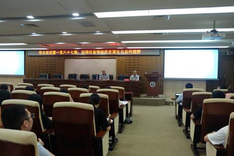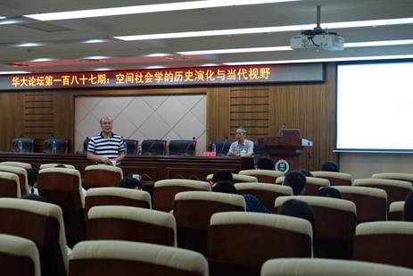 6月21日晚七点,由研究生院举办,社会学院承办的第一百八十七期“华大论坛”于逸夫国际会议中心一楼顺利举行。中国人民大学社会学系教授刘少杰老师做客本期论坛,以“空间社会学的历史演进与当代视野”为题进行了一场精彩的学术讲座。参加本次讲座的有社会学院的师生及慕名而来的其他学院学生,讲座由社会学院院长符平老师主持,他向在座师生介绍了刘少杰教授,并对刘少杰教授的到来表示热烈欢迎。