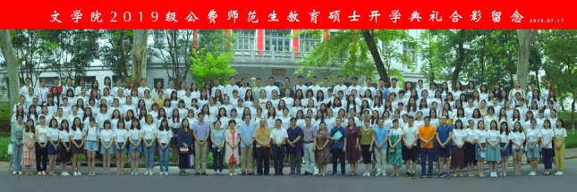 开学典礼后,文学院领导、部分研究生导师与2019级公费师范生教育硕士一起在文学院门口合影留念。
