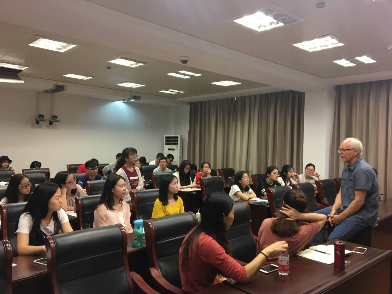 6月13日上午9:30,美国加州州立大学北岭分校新闻系终身教授,新闻学学士,艺术教育硕士,视觉传达艺术硕士David Blumenkrant教授在国家文化产业研究中心318多功能报告厅开展题为“Protection and Promotion of China's Intangible Cultural Heritage”的第162期“华大讲坛”讲座。