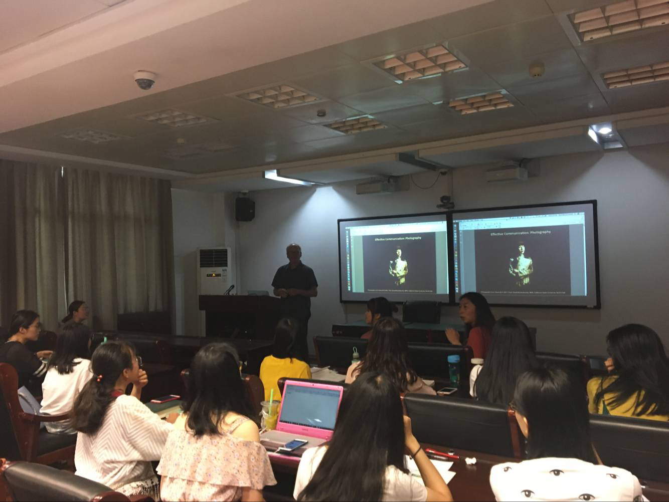 讲座伊始,David 教授进行简短的自我介绍并表达此次讲座旨在分享交流一些中国非遗相关的视频与图片。他首先播放了两段有关武汉文化的视频。第一段视频介绍了“湖北荆州龙舟节”的盛况;第二段则展现了现代与传统文化碰撞的奇特景象:汉街一隅,讲述了一条街道隔着的传统与现代,既格格不入又共生共存的故事。这两段视频是David教授在湖北印象深刻的场景,通过这两段视频来引发同学们对此次讲座主题的兴趣。