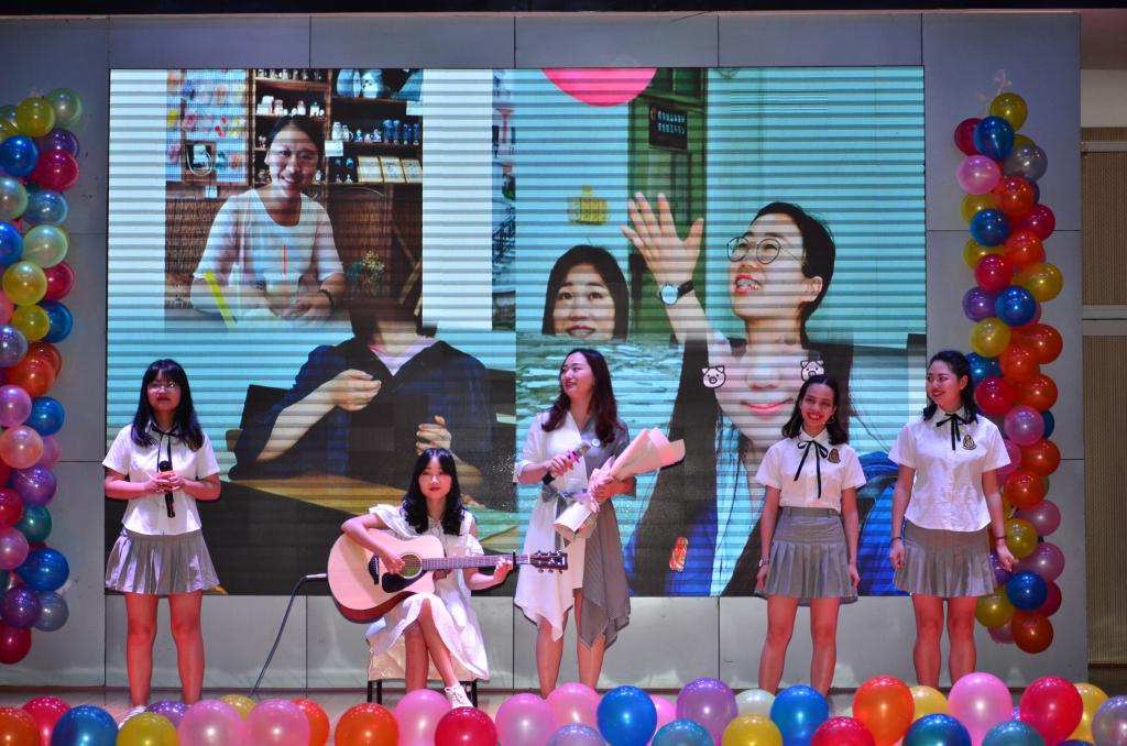 接下来的一出话剧《海凤寻亲》情节精彩突出,语言幽默生动,感恩的真挚情感缓缓流淌。欢快的“你划我猜”小游戏活跃了现场气氛,而随即晚会也走向了尾章。光影中留芳影,望前路追幸福,师生深情合唱一支《送你一匹马》,朗诵《一起走过的青春》,缅怀几年来的点点滴滴悲喜幽幽,带着最真挚的祈盼,祝愿莘莘学子《归来仍是少年》。最后,晚会在《光阴的故事》大合唱里完美落幕。