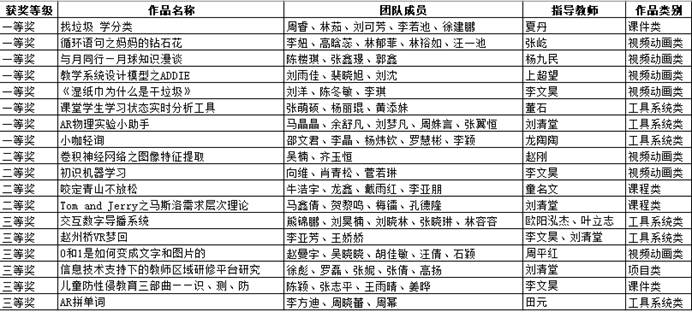 附:我院研究生在第三届“iTeach”全国大学生数字化教育应用创新大赛奖项情况