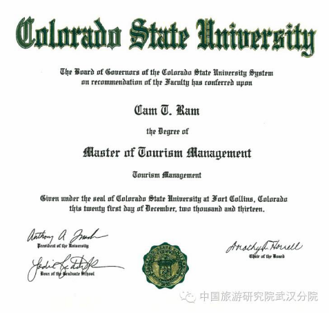 按照科罗拉多州立大学的培养标准,修满32学分并完成八周专业实习的学生,可获得由美国科罗拉多州立大学颁发的旅游管理专业硕士学位证书。