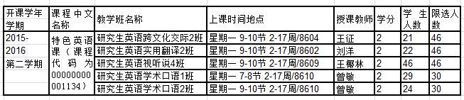 关于下学期学术学位硕士研究生特色英语课的选课工作已经结束,现将有关事项通知如下: