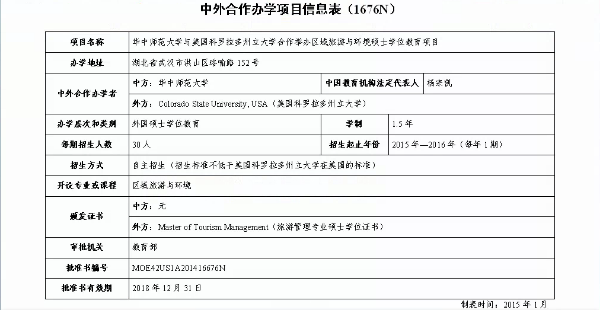 该项目是经中国教育部批准,中、美大学联合办学,修业年限为三学期(1.5年),颁发美方学校硕士学位证书的新型研究生培养项目,旨在培养具有国际化视野的区域旅游与环境领域高水平管理人才。