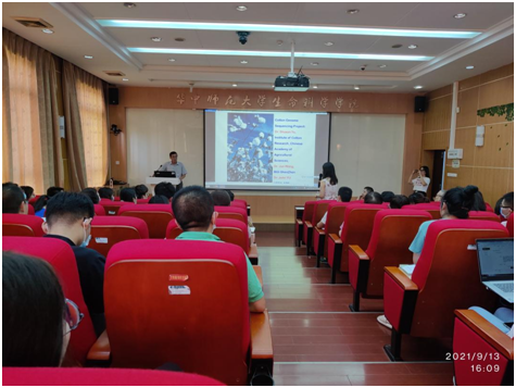 在自由提问交流环节,现场观众踊跃举手提问。与会的老师分别就除乙烯外的生长素对棉纤维的生长是否有调控作用,以及可可的基因组保持不变是否从基因组的结构上看出些端倪等问题向朱玉贤院士提问,并得到了详细的解答。最后邱保胜院长对本次讲座进行总结发言。