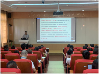 朱玉贤院士以“棉花基因组演化与农业应用”为题,从四个棉花基因组序列信息、棉花A基因组的起源、棉花A、D基因组与AtDt亚基因组比较、LTR爆发与棉花基因组演化、乙烯调控棉花纤维发育的基因组学证据等方面进行了系统的介绍。