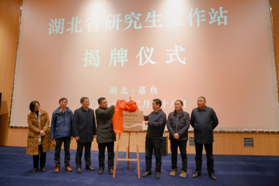 最后,嘉鱼县委王永书记、华中师范大学研究生院副院长叶飞及相关领导共同为湖北省研究生工作站揭牌。